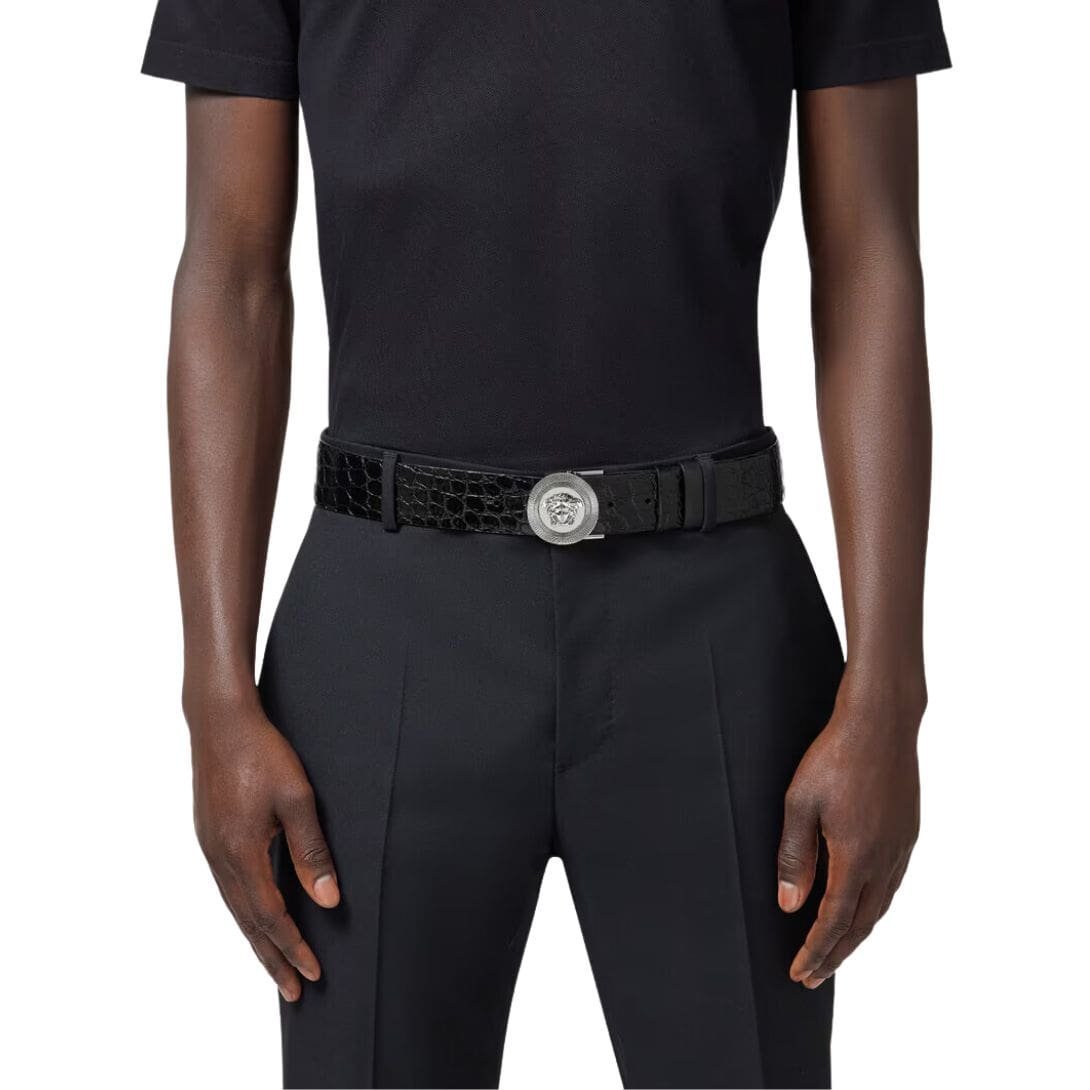 In summary, the Versace Medusa Heritage Leather Belt 3 cm is more than just an accessory; it is a symbol of sartorial excellence, craftsmanship, and timeless elegance. With its iconic design and impeccable quality, it embodies the spirit of Versace and elevates any wardrobe with its undeniable allure.