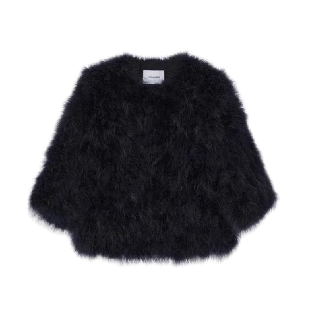 Experience Yves Salomon Cropped Feather Jacket with dramatic effect of feathers adds a sense of mystery and elegance to a cropped jacket, instantly elevating any outfit. The neck fastening, three-quarter length sleeves, and silk lining add a stylish, luxurious feel to this instantly noticeable piece.