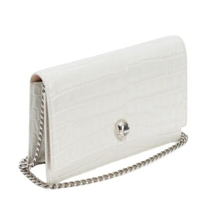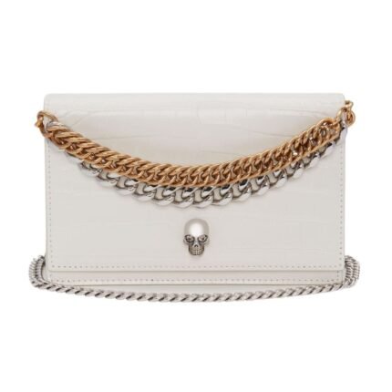 ALEXANDER MCQUEEN WOMANS SMALL SKULL BAG WITH CHAIN IN LVORY