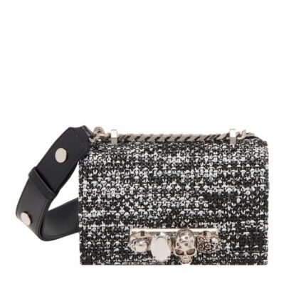 ALEXANDER MCQUEEN WOMANS THE BIKER MINI JEWELLED SATCHEL IN BLACKWHITE