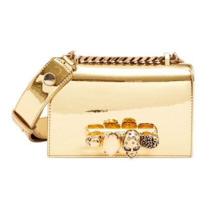 ALEXANDER MCQUEEN WOMANS THE BIKER MINI JEWELLED SATCHEL IN GOLD