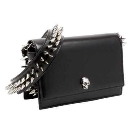 ALEXANDER MCQUEEN WOMANS THE BIKER SMALL SKULL BAG IN BLACK