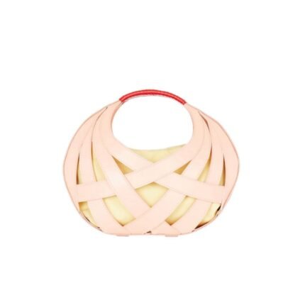 BALMAIN CALFSKIN BASKET BAG WITH AN OPENWORK GRID MOTIFI