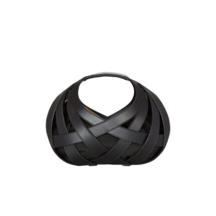BALMAIN CALFSKIN BASKET BAG WITH AN OPENWORK GRID MOTIF BLACK